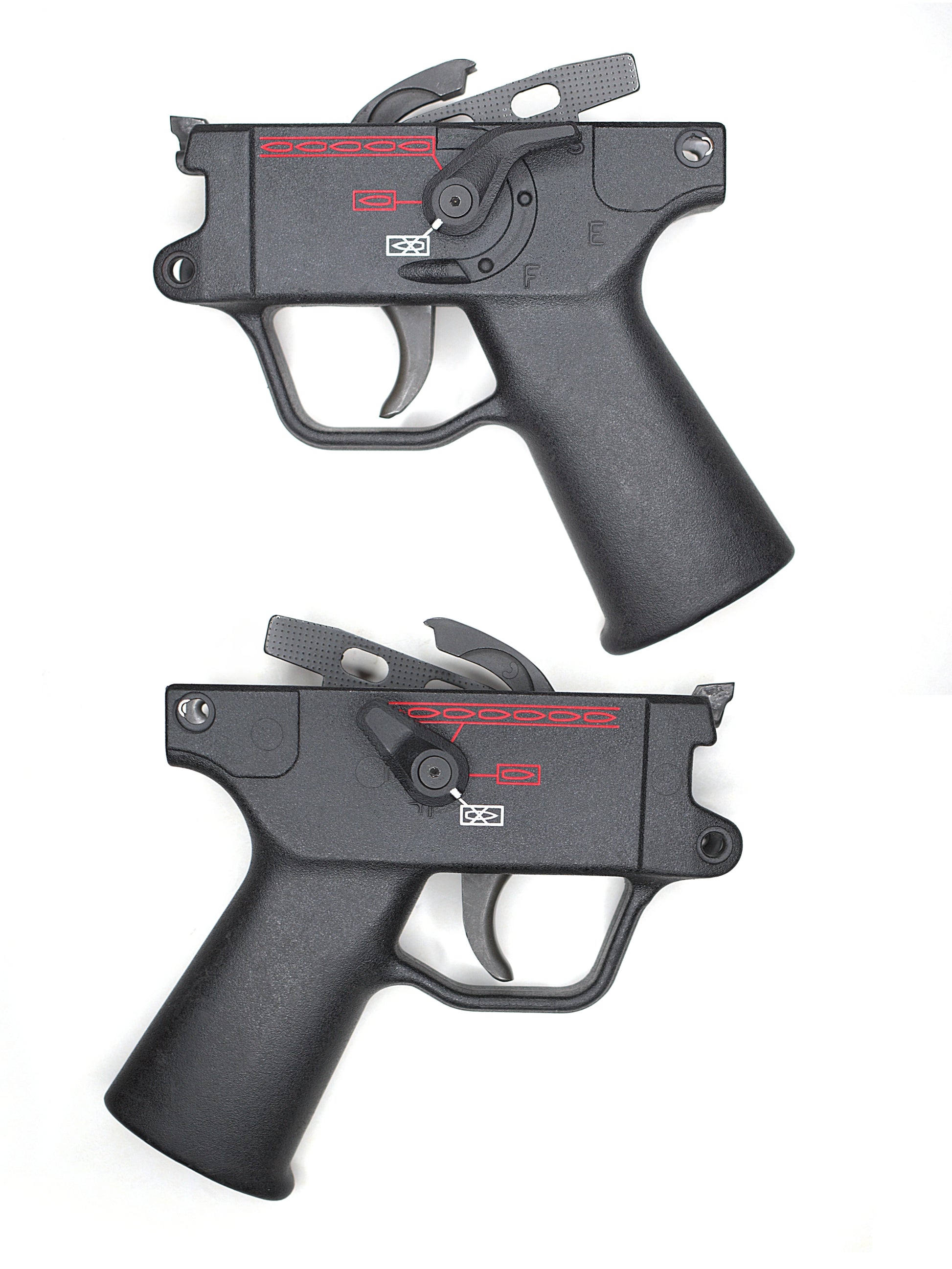 Second picture shows how the pictograms line up with a Magpul ESK selector lever, no selector lever or trigger pack is included with this service. If you would like to have a white mark added to your selector levers, just send them in with your housing and I will mark them.